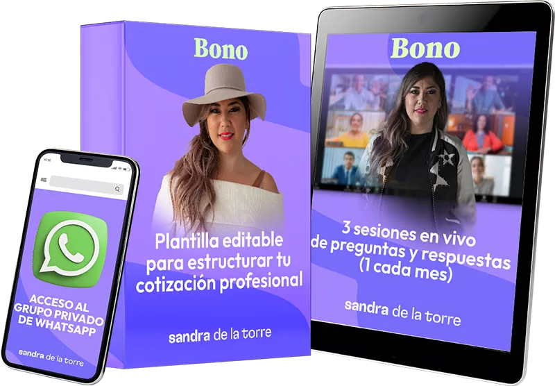 ✔️Estructurar cotizaciones estratégicas. Justificarás el valor de tus servicios para que el cliente lo perciba como irresistible. Incluirás etapas, cláusulas y condiciones que te protejan y generen confianza.